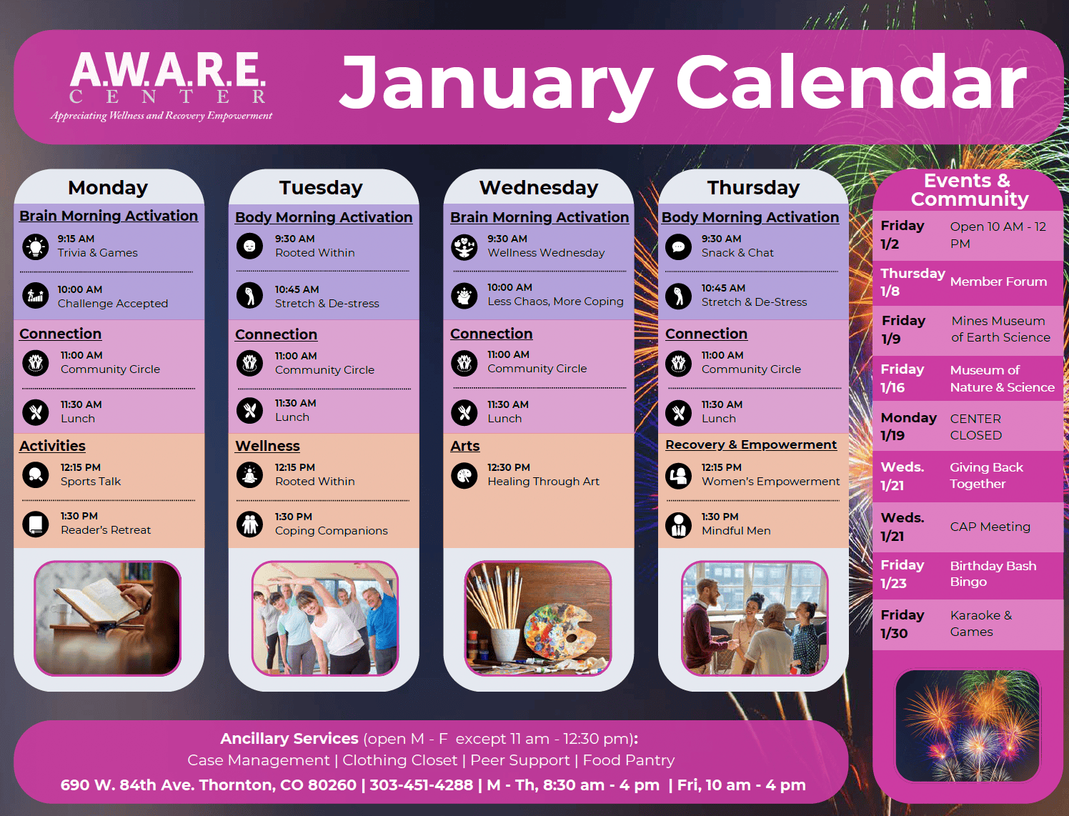 January 2026 AWARE Center Calendar